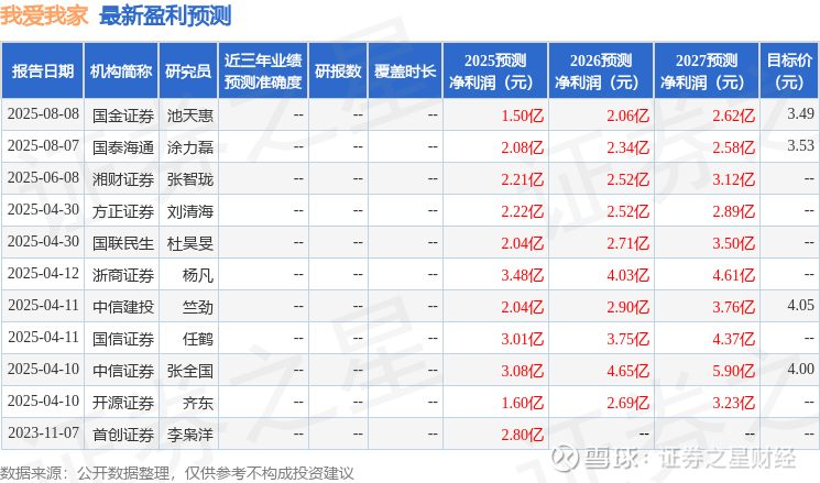最新盈利预测明细如下: