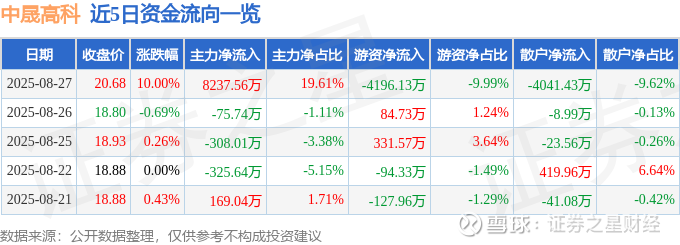 8月27日的资金流向数据方面,主力资金净流入8237.56万元,占总成交额19.61%,游资资金净流出4196.13万元,占总成交额9.99%,散户资金净流出4041.43万元,占总成交额9.62%。
