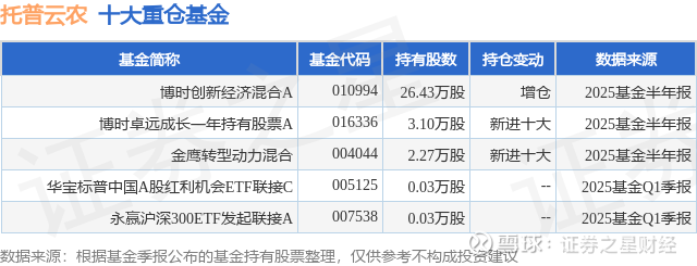 根据2025基金半年报公募基金重仓股数据,重仓该股的公募基金共3家,其中持有数量最多的公募基金为博时基金的博时创新经济混合A。博时创新经济混合A目前规模为4.03亿元,最新净值1.345(8月26日),较上一交易日上涨0.21%,近一年上涨75.73%。该公募基金现任基金经理为田俊维。田俊维在任的基金产品包括:博时卓远成长一年持有股票A,管理时间为2022年9月29日至今,期间收益率为32.52%;博时卓越成长混合A,管理时间为2024年1月30日至今,期间收益率为33.37%;博时卓睿成长股票A,管理时间为2025年6月20日至今,期间收益率为1.23%。