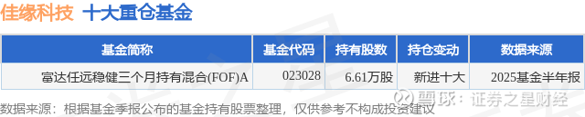 根据2025基金半年报公募基金重仓股数据,重仓该股的公募基金共1家,其中持有数量最多的公募基金为富达基金(中国)的富达任远稳健三个月持有混合(FOF)A。富达任远稳健三个月持有混合(FOF)A目前规模为1.47亿元,最新净值1.0133(8月22日),较上一交易日上涨0.28%。该公募基金现任基金经理为赵强。