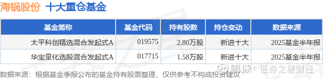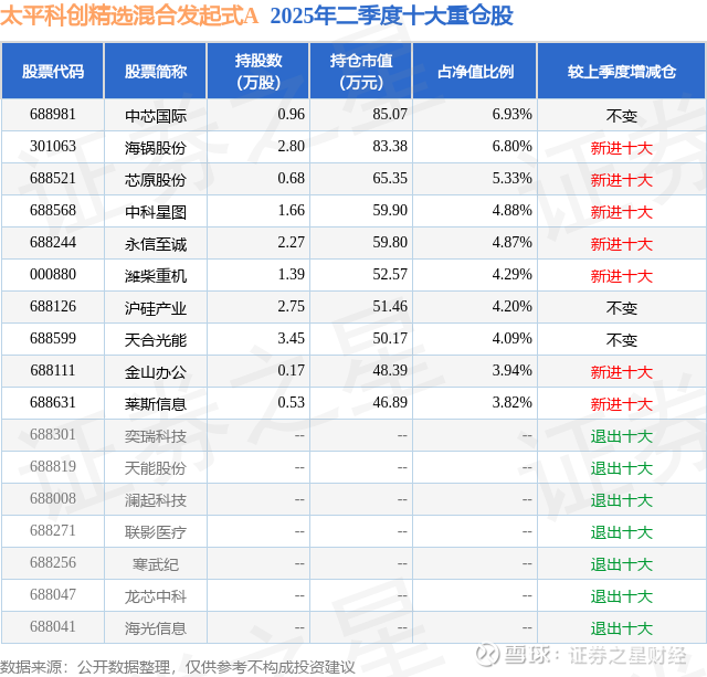 根据2025基金半年报公募基金重仓股数据,重仓该股的公募基金共2家,其中持有数量最多的公募基金为太平基金的太平科创精选混合发起式A。太平科创精选混合发起式A目前规模为0.11亿元,最新净值1.2379(8月26日),较上一交易日下跌1.17%,近一年上涨49.69%。该公募基金现任基金经理为杨行远。