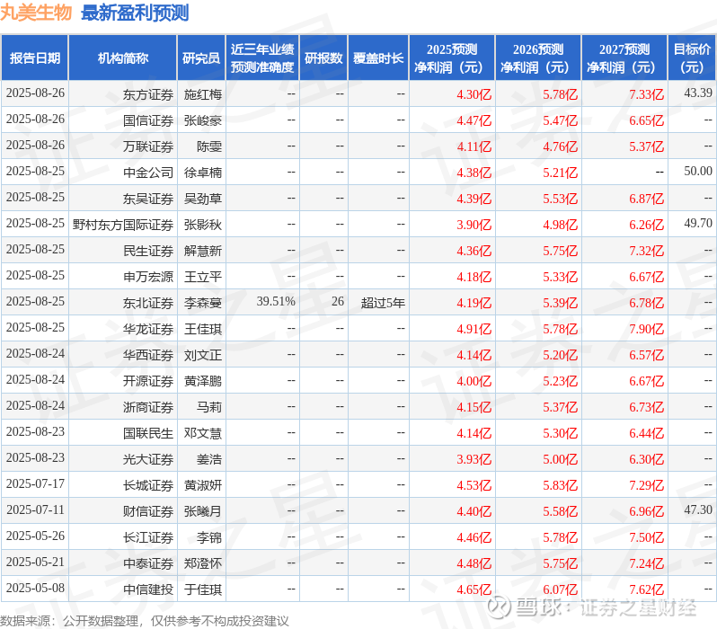 最新盈利预测明细如下: