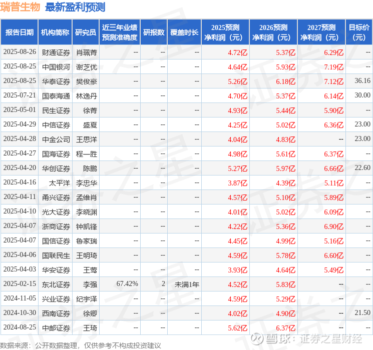 最新盈利预测明细如下: