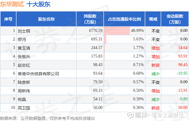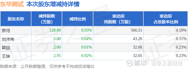 证券之星消息,8月27日东华测试发布公告《东华测试:关于控股股东、实际控制人及其一致行动人减持股份触及1%整数倍的公告》,其股东罗沔、刘沛尧、瞿喆、王瑞于2025年8月20日至2025年8月26日间合计减持138.75万股,占公司目前总股本的1.0031%,变动期间该股股价上涨6.57%,截止8月26日收盘报46.36元。