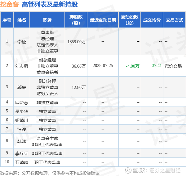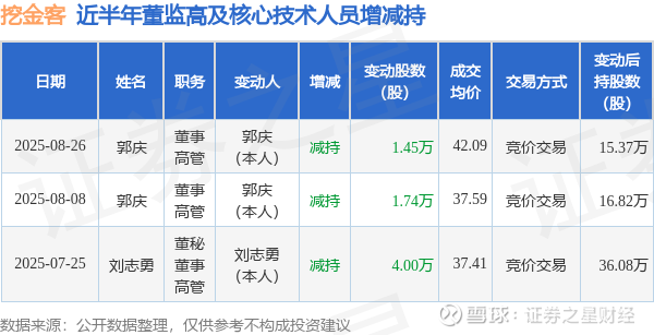 挖金客近半年内的董监高及核心技术人员增减持详情如下: