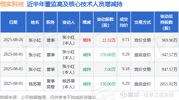 恒实科技近半年内的董监高及核心技术人员增减持详情如下: