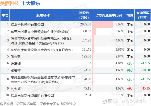 根据美信科技2025年一季报公布的十大股东详情如下:
