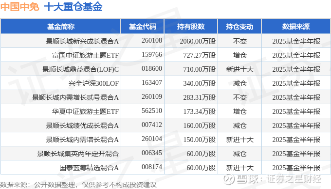持有中国中免最多的基金为景顺长城新兴成长混合A,目前规模为188.13亿元,最新净值1.813(8月27日),较上一交易日下跌2.26%,近一年上涨19.83%。该基金现任基金经理为刘彦春。
