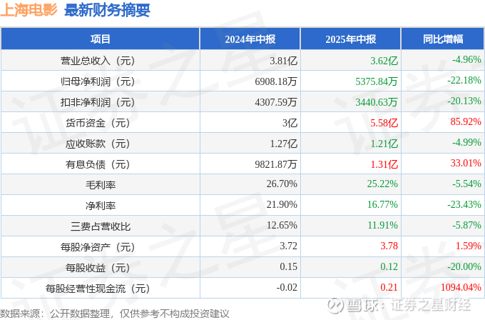 其他应收款变动幅度为-34.94%,原因:应收电影制片款减少。一年内到期的非流动资产变动幅度为6730.78%,原因:长期定期存款由于一年内到期,从其他非流动资产转入。在建工程变动幅度为334.59%,原因:新项目建设工程增加。其他非流动资产变动幅度为-48.55%,原因:长期定期存款由于一年内到期,转入一年内到期非流动资产。应付职工薪酬变动幅度为-34.72%,原因:支付上年末应付未付的职工薪酬。应交税费变动幅度为103.21%,原因:应交的各类税款增加。其他非流动负债变动幅度为-76.51%,原因:应付的租赁押金减少。未分配利润变动幅度为37.62%,原因:形成的归母净利润增加。财务费用变动幅度为-81.59%,原因:使用权资产摊销的利息费用同比下降。所得税费用变动幅度为60.18%,原因:去年同期有对控股子公司的股权投资损失计提递延所得税,本年无同类情况。经营活动产生的现金流量净额变动幅度为1094.04%,原因:影片制作和分账片款的现金流同比增加。投资活动产生的现金流量净额变动幅度为93.77%,原因:结构性存款投资和定期存款产生的现金流同比增加。筹资活动产生的现金流量净额变动幅度为14.77%,原因:支付租赁负债的租金同比减少。证券之星价投圈财报分析工具显示: