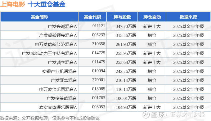 持有上海电影最多的基金为广发兴诚混合A,目前规模为11.57亿元,最新净值0.4763(8月27日),较上一交易日下跌2.0%,近一年上涨16.41%。该基金现任基金经理为郑澄然。