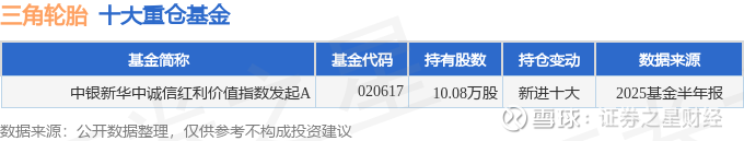 持有三角轮胎最多的基金为中银新华中诚信红利价值指数发起A,目前规模为0.29亿元,最新净值1.0335(8月27日),较上一交易日下跌1.77%。该基金现任基金经理为赵志华 姚进。