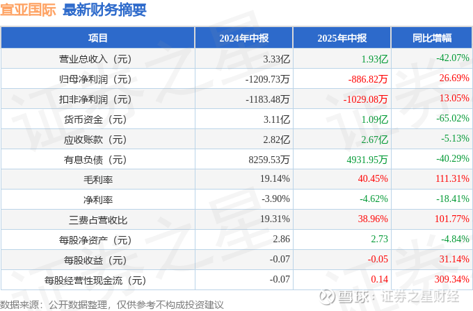 据证券之星公开数据整理,近期宣亚国际(300612)发布2025年中报。截至本报告期末,公司营业总收入1.93亿元,同比下降42.07%,归母净利润-886.82万元,同比上升26.69%。按单季度数据看,第二季度营业总收入8085.11万元,同比下降55.69%,第二季度归母净利润-483.88万元,同比下降161.87%。本报告期宣亚国际三费占比上升明显,财务费用、销售费用和管理费用总和占总营收同比增幅达101.77%。