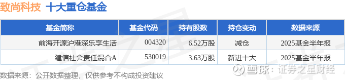 建议关注公司应收账款状况(应收账款/利润已达482.62%)持有致尚科技最多的基金为前海开源沪港深乐享生活,目前规模为1.14亿元,最新净值2.3708(8月27日),较上一交易日上涨2.71%,近一年上涨94.51%。该基金现任基金经理为魏淳 梁策。