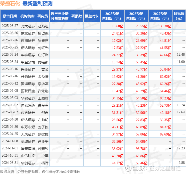 开源证券股份有限公司金益腾,龚道琳,蒋跨跃近期对荣盛石化进行研究并发布了研究报告《公司信息更新报告:2025H1扣非净利同比增长,看好炼化景气度回暖》,给予荣盛石化买入评级。