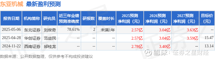 证券之星数据中心根据近三年发布的研报数据计算,东北证券刘俊奇研究员团队对该股研究较为深入,近三年预测准确度均值为78.61%,其预测2025年度归属净利润为盈利2.57亿,根据现价换算的预测PE为20.87。