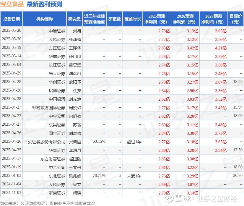 最新盈利预测明细如下: