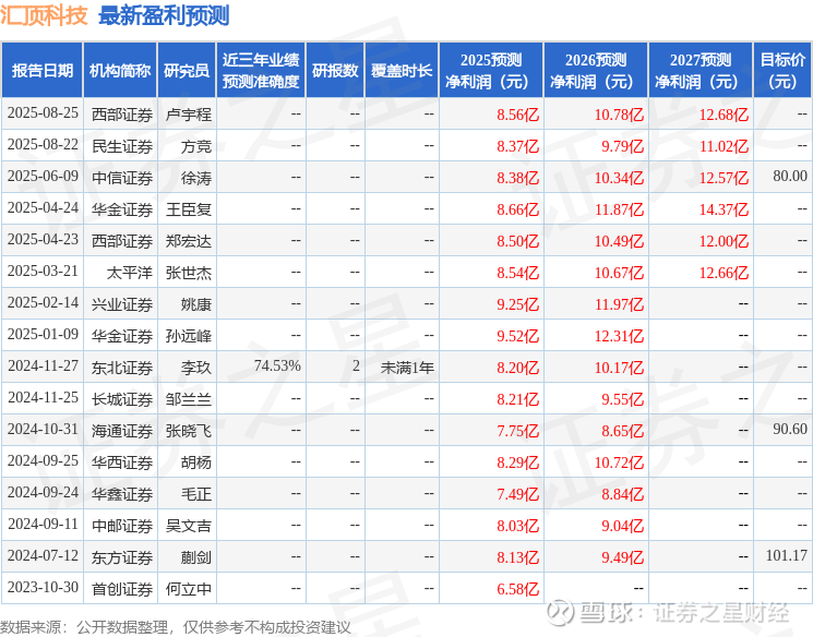 证券之星数据中心根据近三年发布的研报数据计算,东北证券李玖研究员团队对该股研究较为深入,近三年预测准确度均值为74.53%,其预测2025年度归属净利润为盈利8.2亿,根据现价换算的预测PE为45.39。