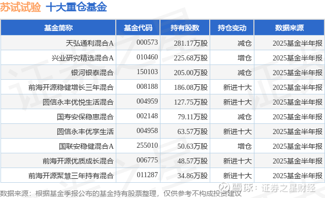 根据2025基金半年报公募基金重仓股数据,重仓该股的公募基金共30家,其中持有数量最多的公募基金为天弘基金的天弘通利混合A。天弘通利混合A目前规模为7.75亿元,最新净值2.521(8月27日),较上一交易日下跌1.64%,近一年上涨39.9%。该公募基金现任基金经理为金梦 姜晓丽。姜晓丽在任的基金产品包括:天弘永利债券A,管理时间为2012年8月3日至今,期间收益率为112.59%;天弘安康颐养混合A,管理时间为2013年1月21日至今,期间收益率为130.01%;天弘增强回报债券A,管理时间为2019年5月29日至今,期间收益率为48.81%;天弘安盈一年持有A,管理时间为2021年5月12日至今,期间收益率为12.83%。