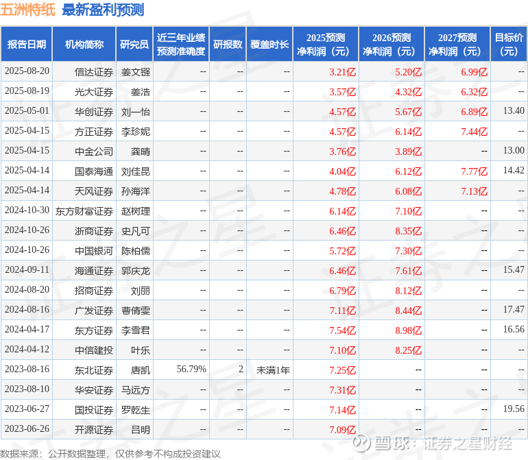以下是详细的盈利预测信息: