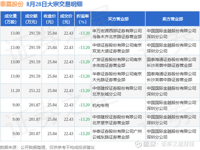 证券之星消息,8月28日泰嘉股份发生大宗交易,交易数据如下:
