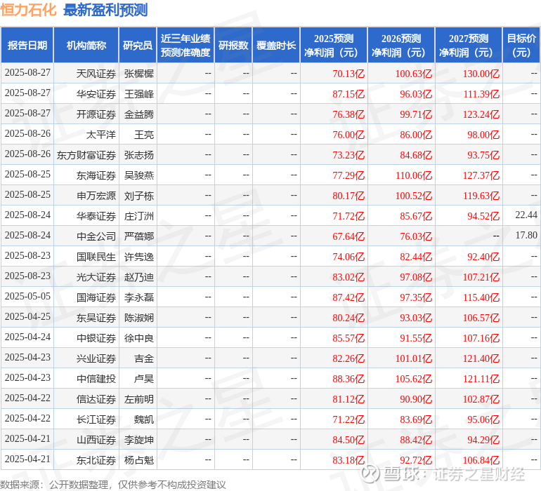 信达证券股份有限公司刘奕麟,刘红光近期对恒力石化进行研究并发布了研究报告《行业竞争格局或持续优化,现金流改善推动股东回报增强》,给予恒力石化买入评级。