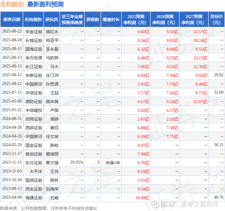 最新盈利预测明细如下: