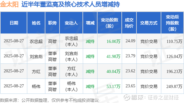 金太阳近半年内的董监高及核心技术人员增减持详情如下:
