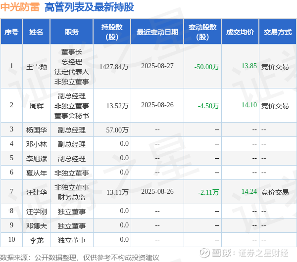 中光防雷近半年内的董监高及核心技术人员增减持详情如下: