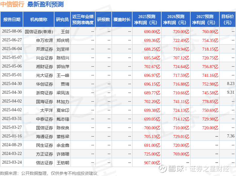 开源证券股份有限公司刘呈祥,吴文鑫近期对中信银行进行研究并发布了研究报告《中信银行2025年中报点评:利润平稳增长,中期分红比例拟提升》,给予中信银行买入评级。