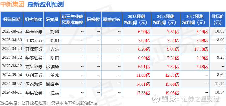 最新盈利预测明细如下: