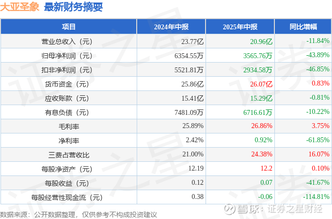 据证券之星公开数据整理,近期大亚圣象(000910)发布2025年中报。截至本报告期末,公司营业总收入20.96亿元,同比下降11.84%,归母净利润3565.76万元,同比下降43.89%。按单季度数据看,第二季度营业总收入13.08亿元,同比下降9.71%,第二季度归母净利润1.05亿元,同比上升5.9%。本报告期大亚圣象公司应收账款体量较大,当期应收账款占最新年报归母净利润比达1099.5%。