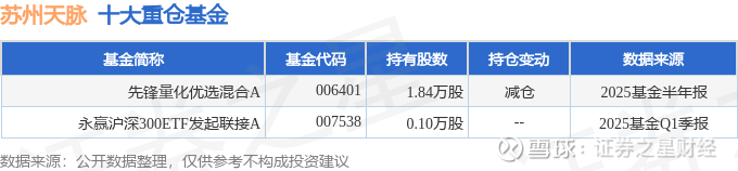 持有苏州天脉最多的基金为先锋量化优选混合A,目前规模为0.4亿元,最新净值1.8888(8月28日),较上一交易日上涨2.22%,近一年上涨46.83%。该基金现任基金经理为曾捷。