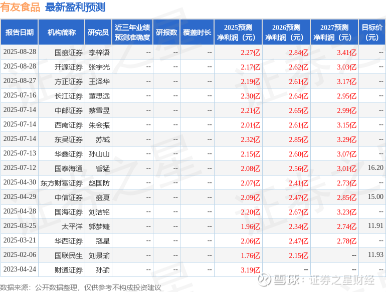 东吴证券股份有限公司苏铖,李茵琦近期对有友食品进行研究并发布了研究报告《2025年中报点评:成长性延续,Q2净利率环比提升》,给予有友食品买入评级。