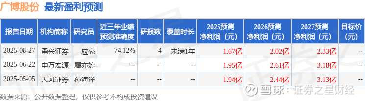 证券之星数据中心根据近三年发布的研报数据计算,甬兴证券应豪研究员团队对该股研究较为深入,近三年预测准确度均值为74.12%,其预测2025年度归属净利润为盈利1.67亿,根据现价换算的预测PE为33.19。