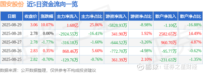 证券之星消息,国安股份8月29日涨停收盘,收盘价3.06元。该股于13点47分涨停,未打开涨停,截止收盘封单资金为1.19亿元,占其流通市值0.99%。