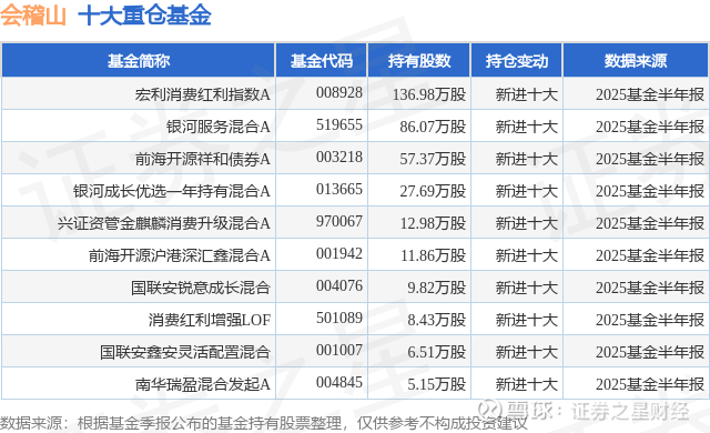 重仓会稽山的前十大公募基金请见下表: