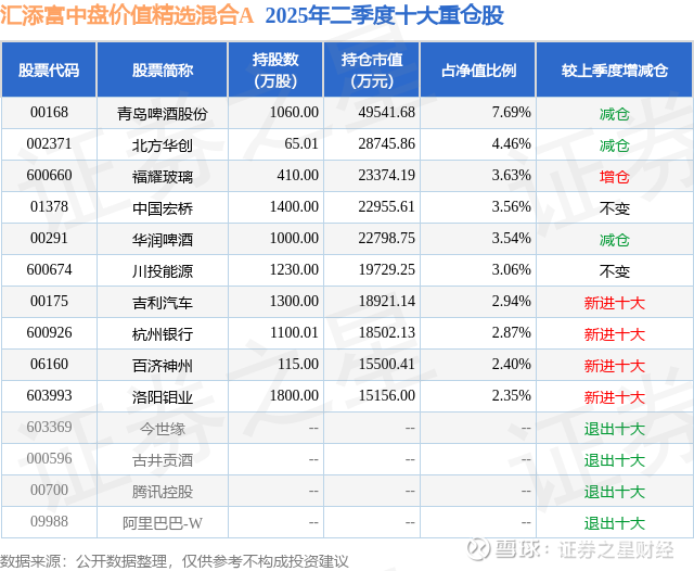 根据2025基金半年报公募基金重仓股数据,重仓该股的公募基金共74家,其中持有数量最多的公募基金为汇添富基金的汇添富中盘价值精选混合A。汇添富中盘价值精选混合A目前规模为53.96亿元,最新净值0.8158(8月28日),较上一交易日上涨1.4%,近一年上涨30.91%。该公募基金现任基金经理为胡昕炜。胡昕炜在任的基金产品包括:汇添富消费行业混合,管理时间为2016年4月8日至今,期间收益率为135.26%;汇添富价值创造定开混合,管理时间为2018年1月19日至今,期间收益率为62.15%;汇添富消费升级混合A,管理时间为2018年12月21日至今,期间收益率为109.2%;汇添富民安增益定开混合A,管理时间为2019年9月17日至今,期间收益率为44.84%。