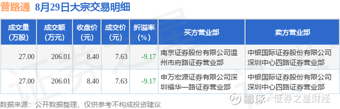 证券之星消息,8月29日普路通发生大宗交易,交易数据如下: