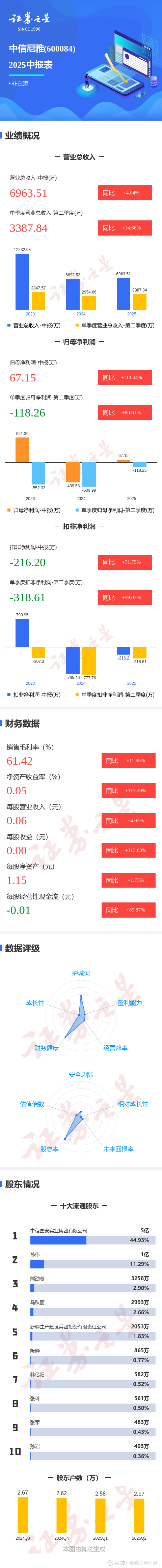 证券之星消息,中信尼雅2025年中报显示,公司主营收入6963.51万元,同比上升4.05%;归母净利润67.15万元,同比上升113.44%;扣非净利润-216.2万元,同比上升71.76%;其中2025年第二季度,公司单季度主营收入3387.84万元,同比上升14.66%;单季度归母净利润-118.26万元,同比上升80.61%;单季度扣非净利润-318.61万元,同比上升59.03%;负债率12.04%,投资收益275.51万元,财务费用65.32万元,毛利率61.42%。