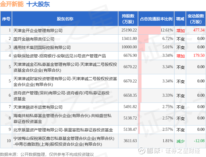 证券之星消息,8月29日金开新能发布公告《金开新能:金开新能源股份有限公司关于公司部分董事、高级管理人员及其他核心骨干员工自愿增持公司股份计划暨落实“提质增效重回报”行动方案的进展公告》,其股东其他核心骨干员工27人于2025年8月1日至2025年8月29日间合计增持4.1万股,占公司目前总股本的0.0021%,变动期间该股股价上涨5.08%,截止8月29日收盘报5.79元。
