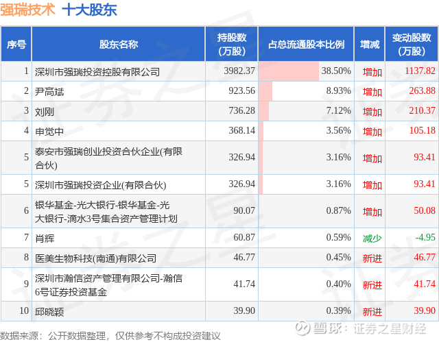 根据强瑞技术2025年中报公布的十大股东详情如下: