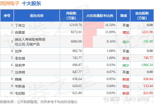 根据同洲电子2025年中报公布的十大股东详情如下:
