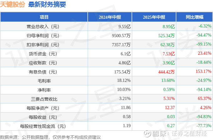 据证券之星公开数据整理,近期天键股份(301383)发布2025年中报。截至本报告期末,公司营业总收入8.95亿元,同比下降6.32%,归母净利润525.34万元,同比下降94.47%。按单季度数据看,第二季度营业总收入4.59亿元,同比下降15.15%,第二季度归母净利润177.39万元,同比下降96.75%。本报告期天键股份公司应收账款体量较大,当期应收账款占最新年报归母净利润比达187.12%。