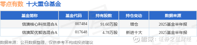 建议关注公司现金流状况(近3年经营性现金流均值/流动负债仅为-17.43%)建议关注财务费用状况(近3年经营活动产生的现金流净额均值为负)建议关注公司应收账款状况(年报归母净利润为负)持有零点有数最多的基金为信澳核心科技混合A,目前规模为6.26亿元,最新净值1.7082(8月29日),较上一交易日下跌0.88%,近一年上涨112.71%。该基金现任基金经理为徐聪。