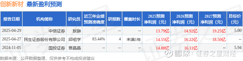 民生证券股份有限公司邱祖学,王作燊近期对创新新材进行研究并发布了研究报告《2025年半年报点评:利润低于预期,海外电解铝进展顺利》,给予创新新材买入评级。