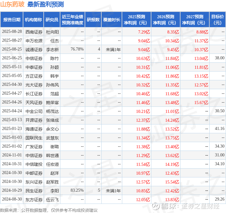 最新盈利预测明细如下: