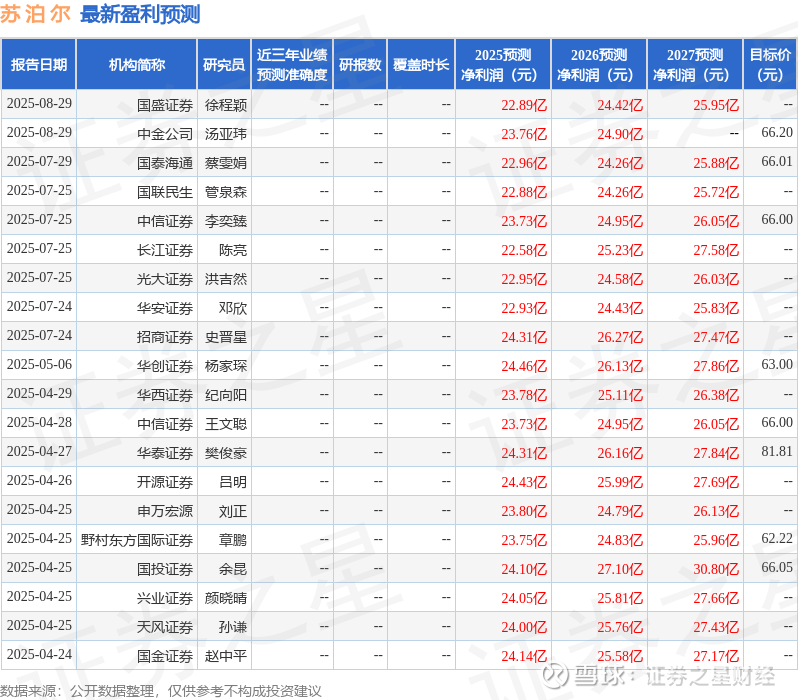 最新盈利预测明细如下: