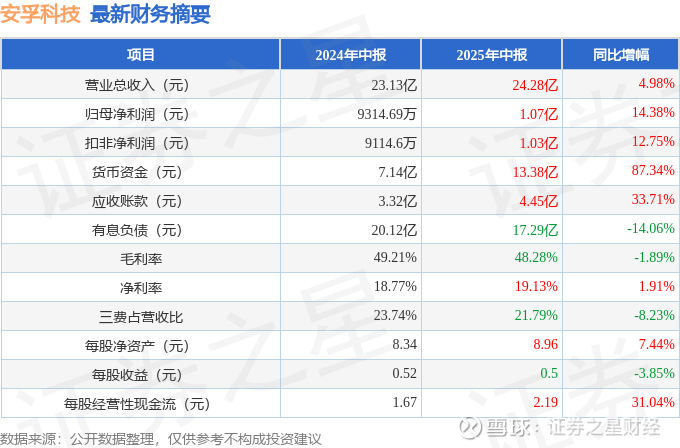 据证券之星公开数据整理,近期安孚科技(603031)发布2025年中报。截至本报告期末,公司营业总收入24.28亿元,同比上升4.98%,归母净利润1.07亿元,同比上升14.38%。按单季度数据看,第二季度营业总收入10.5亿元,同比上升3.92%,第二季度归母净利润3537.25万元,同比上升24.34%。本报告期安孚科技应收账款上升,应收账款同比增幅达33.71%。