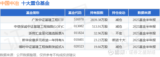 持有中国中冶最多的基金为广发中证基建工程ETF,目前规模为22.25亿元,最新净值1.1715(8月29日),较上一交易日下跌0.26%,近一年上涨25.2%。该基金现任基金经理为霍华明。