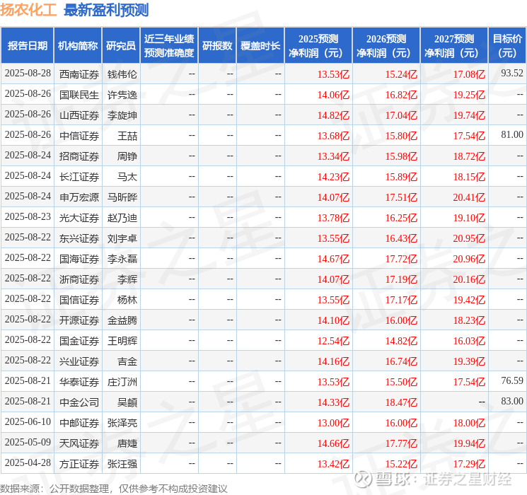 华鑫证券有限责任公司张伟保,高铭谦近期对扬农化工进行研究并发布了研究报告《公司事件点评报告:行业周期底部承压,多产快销驱动逆势增长》,给予扬农化工中性评级。